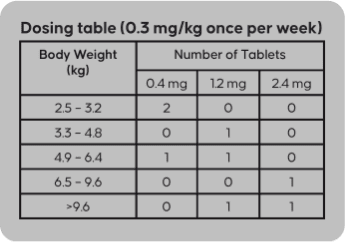 The medication can be administered orally once weekly with or without the use of a pet piller.